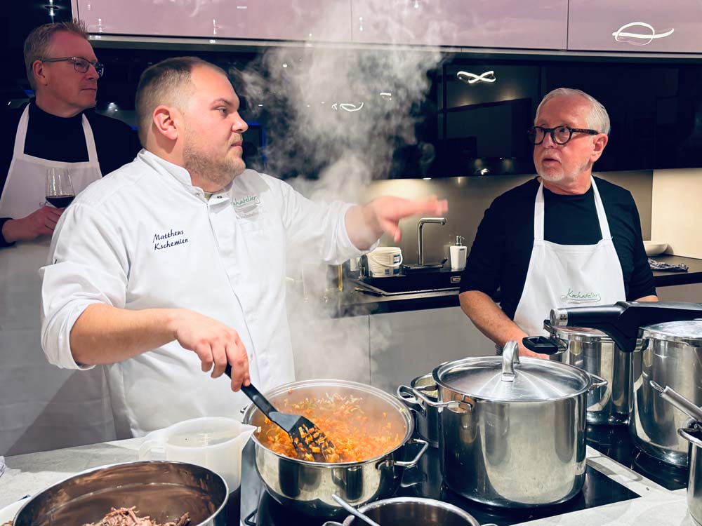 Mattheus, einer der Profiköche dachte zuerst: „Alles UnternehmerInnen, die wollen feiern und nicht kochen.“ Aber keiner der Unternehmerinnen und Unternehmer ließ sich lange bitten, alle machten mit.